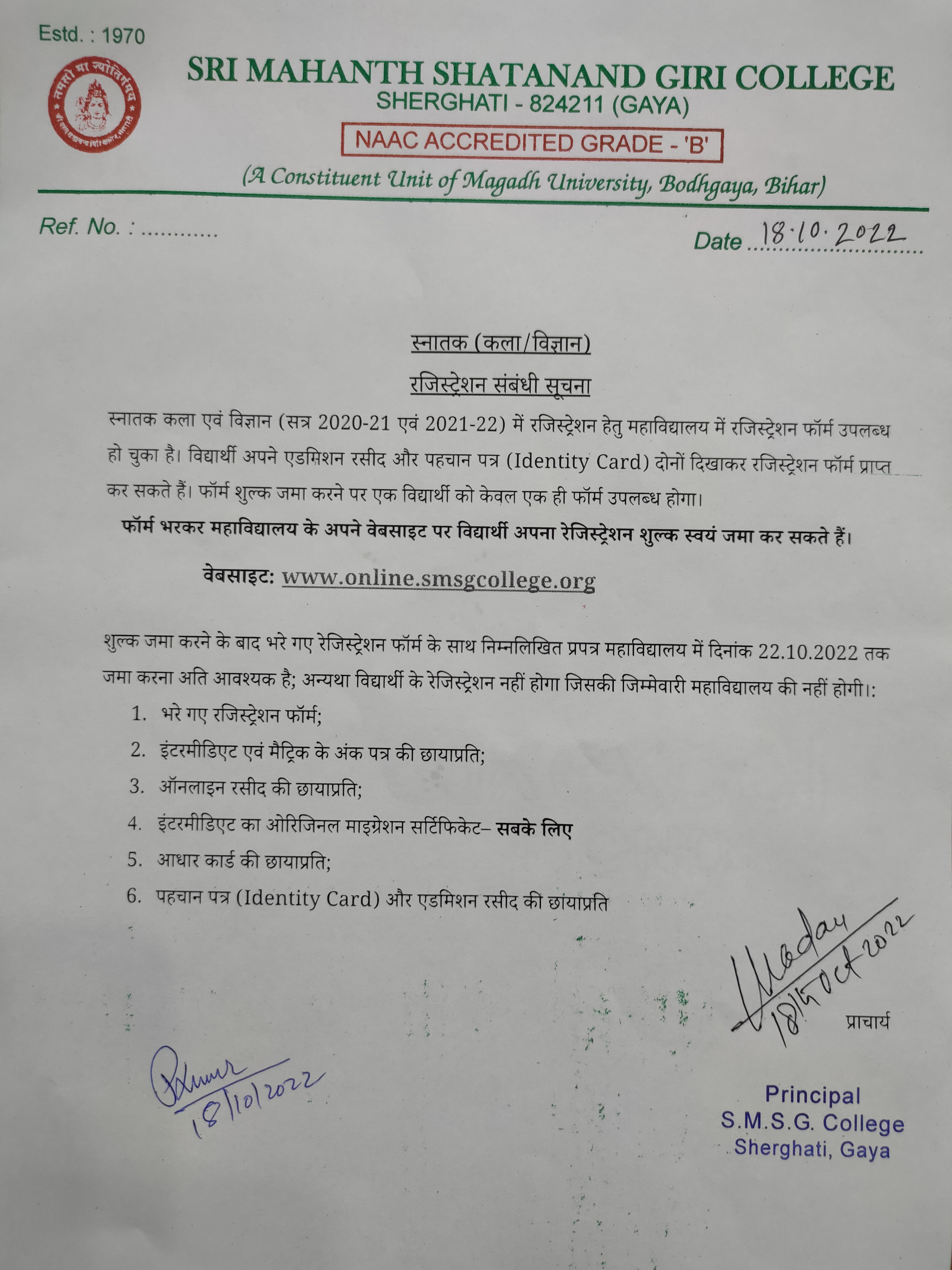 REGARDING DEGREE REGISTRATION FOR SESSION 2020-21 AND 2021-22
