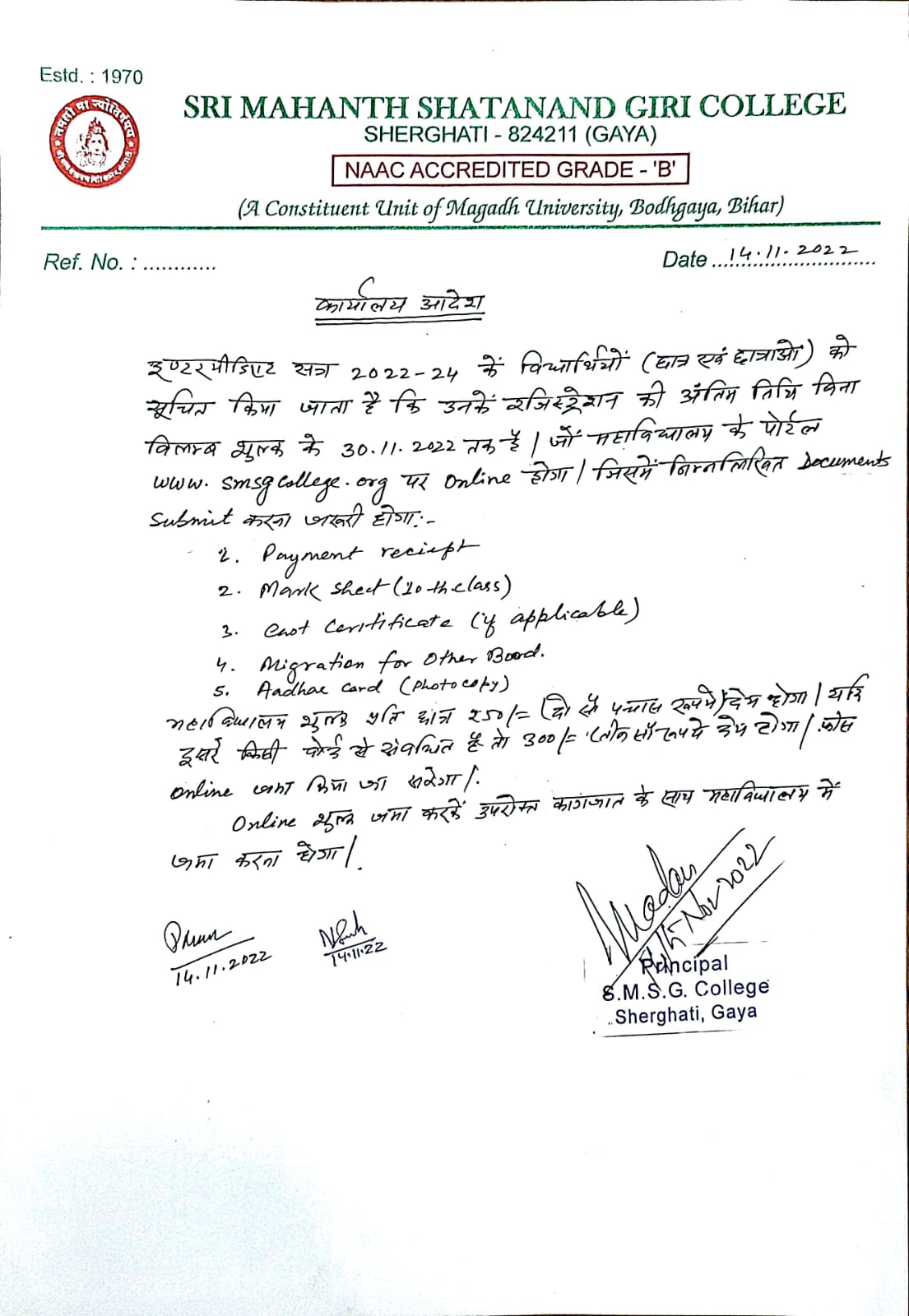 THE LINK FOR ONLINE REGISTRATION OF INTERMEDIATE FOR THE SESSION 2022-24 IS NOW ACTIVATED. THE CONCERNED STUDENTS CAN GO THROUGH THE LINK TO COMPLETE THE REGISTRATION PROCESS.