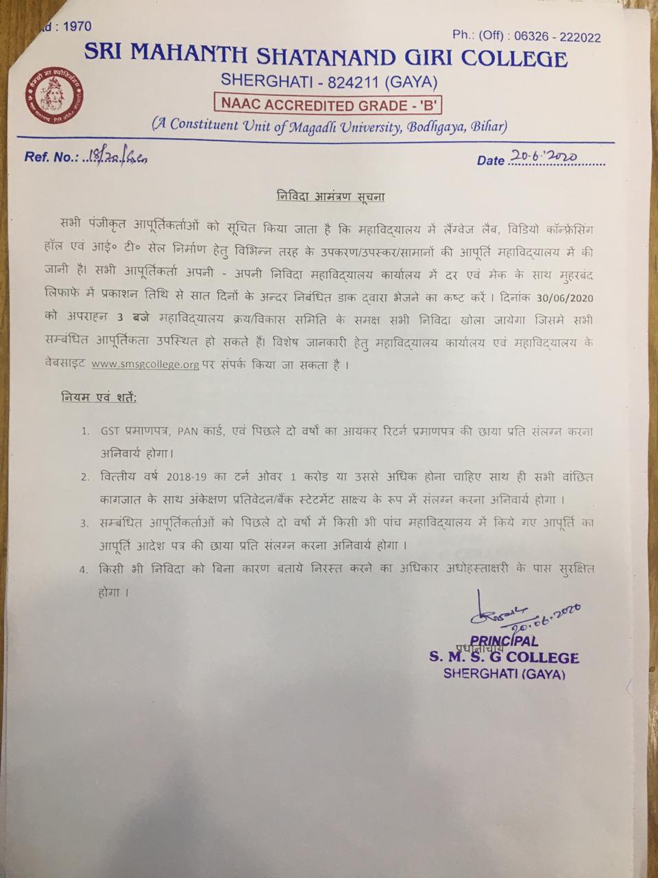 THIS IS TO INFORM TO ALL REGISTERED FIRMS THAT THE COLLEGE NEEDS TO SETUP LANGUAGE LAB, VIDEO CONFERENCING SYSTEM AND IT CELL IN THE COLLEGE. SO ALL THE REGISTERED FIRMS REQUESTED TO SUBMIT THE SEALED QUOTATION FOR EQUIPMENTS AND ACCESSORIES REQUIRED FOR LANGUAGE LAB, VIDEO CONFERENCING SYSTEM AND IT CELL WITHIN 7 DAYS THROUGH REGISTERED POST.